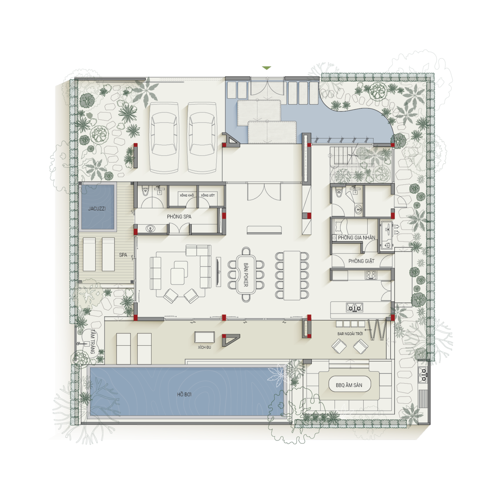 Meticulously designed with innovative features, these villas seamlessly integrate a home wellness system, complete with a sauna, jacuzzi, and expansive open spaces that flow effortlessly from the poolside bar to the dual balconies overlooking the ocean and resort grounds. A sanctuary for relaxation and rejuvenation, these villas offer a tranquil escape without sacrificing sophistication and elegance.